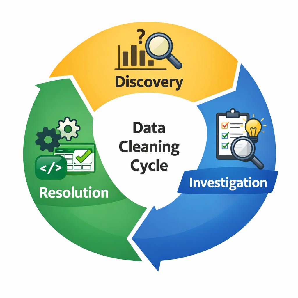 Good data cleaning is not a sequence of operations. It is a learning loop: